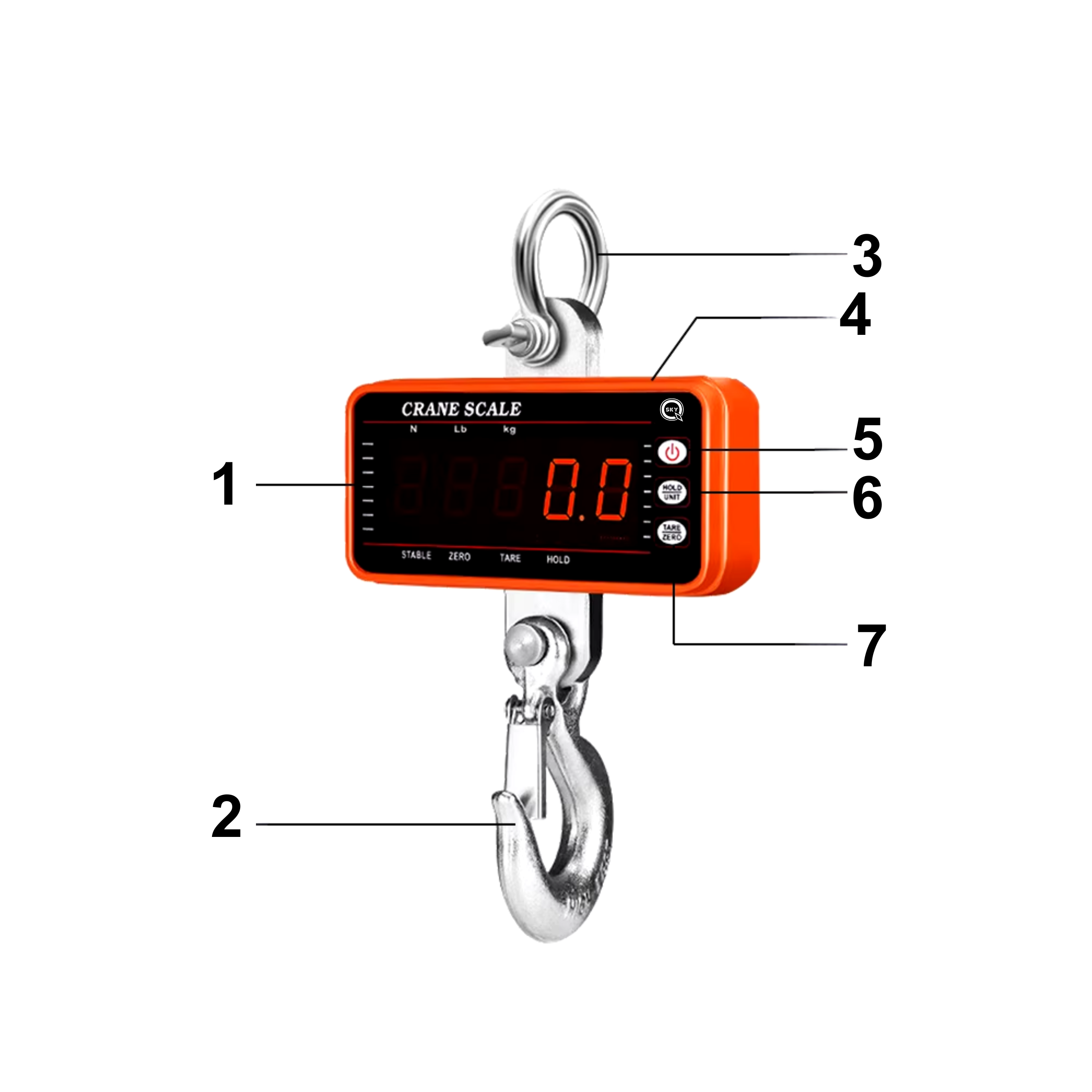✅ Górny uchwyt – solidny uchwyt do zawieszenia wagi na dźwigu lub innym mechanizmie podnoszącym.