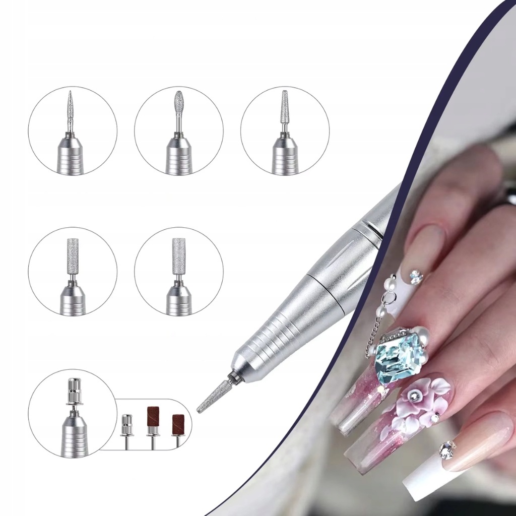 FREZARKA DO PAZNOKCI MANICURE PEDICURE MOCNA PROFESJONALNA ZESTAW FREZÓW
