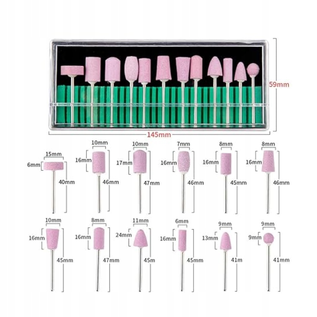 ★ FREZY KAMIENNE DO PAZNOKCI – ZESTAW 12 SZTUK ★