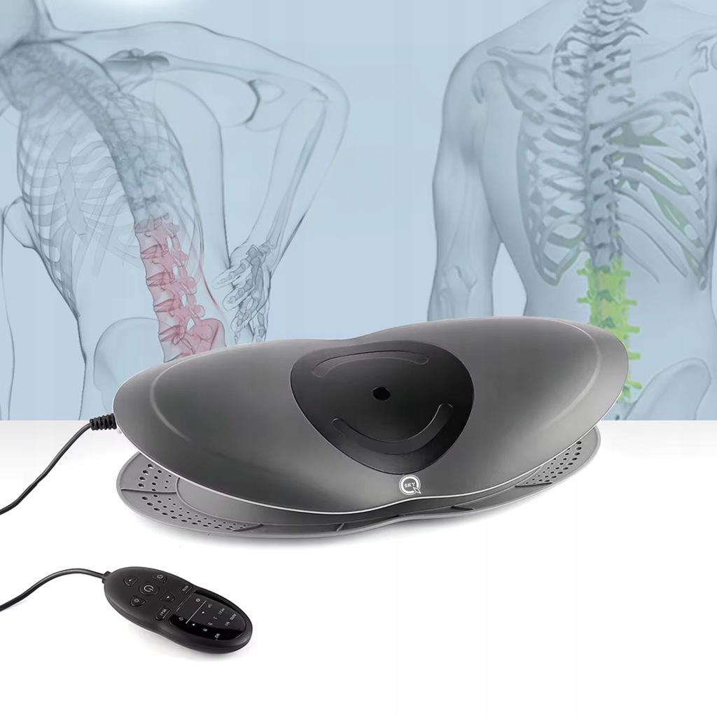 Nowoczesny masażer kręgosłupa dedykowany osobom cierpiącym na bóle lędźwiowe, lumbago oraz dyskopatię.