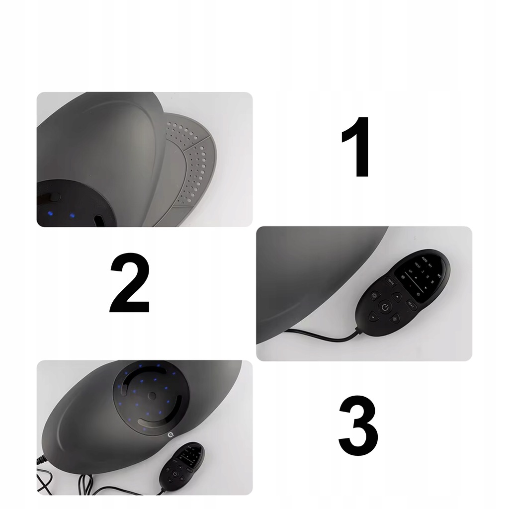 2️⃣ Kontrolki LED – Światła LED wskazujące różne funkcje urządzenia, takie jak grzanie czy aktywne tryby masażu.