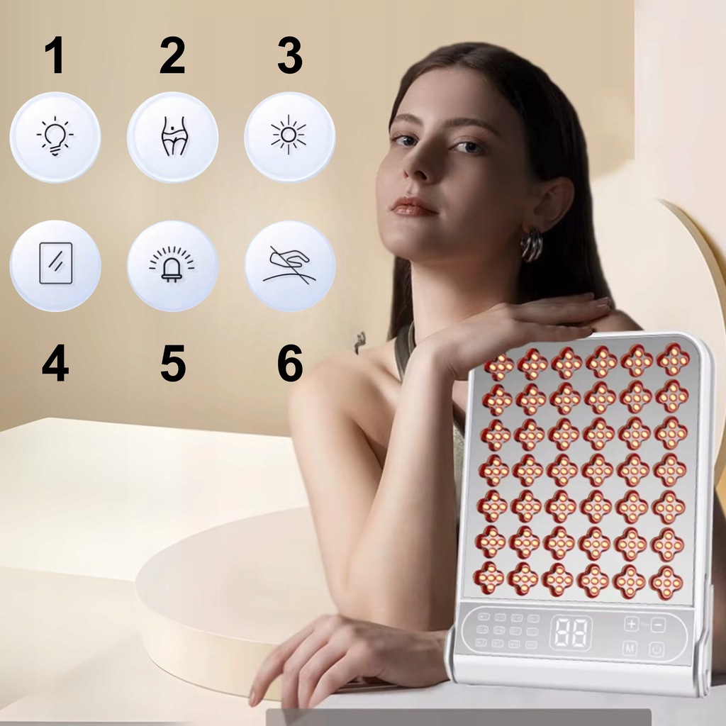 5️⃣   Wysokiej jakości diody LED Lampa wykorzystuje wysokowydajne i trwałe diody, które gwarantują długą żywotność, stabilne działanie i skuteczność terapeutyczną przy każdym użyciu.