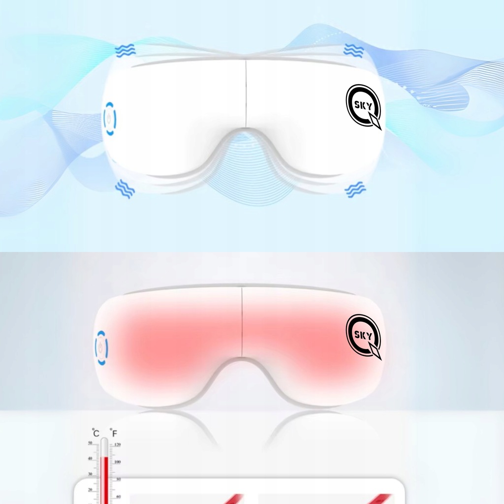Odkryj niezwykły komfort i ulgę dla zmęczonych oczu! Nasz masażer oczu QSKY wykorzystuje podgrzewanie, wibracje oraz ciśnienie powietrza, aby zredukować zmęczenie, napięcie i poprawić krążenie krwi. Dzięki funkcji Bluetooth możesz słuchać ulubionej muzyki podczas relaksu!