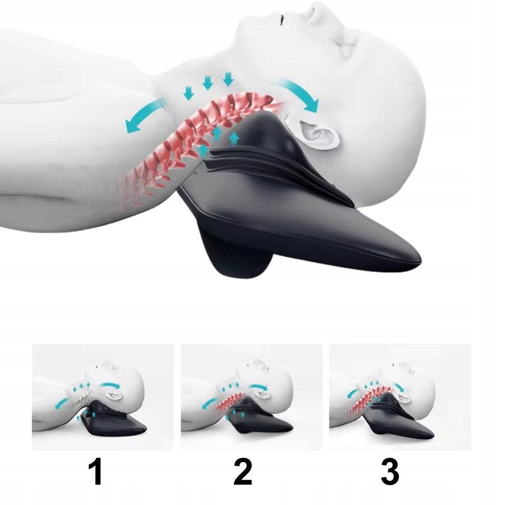 ✅ Trakcja kręgosłupa szyjnego – delikatnie rozciąga kręgi szyjne, redukując ucisk na nerwy i ból.