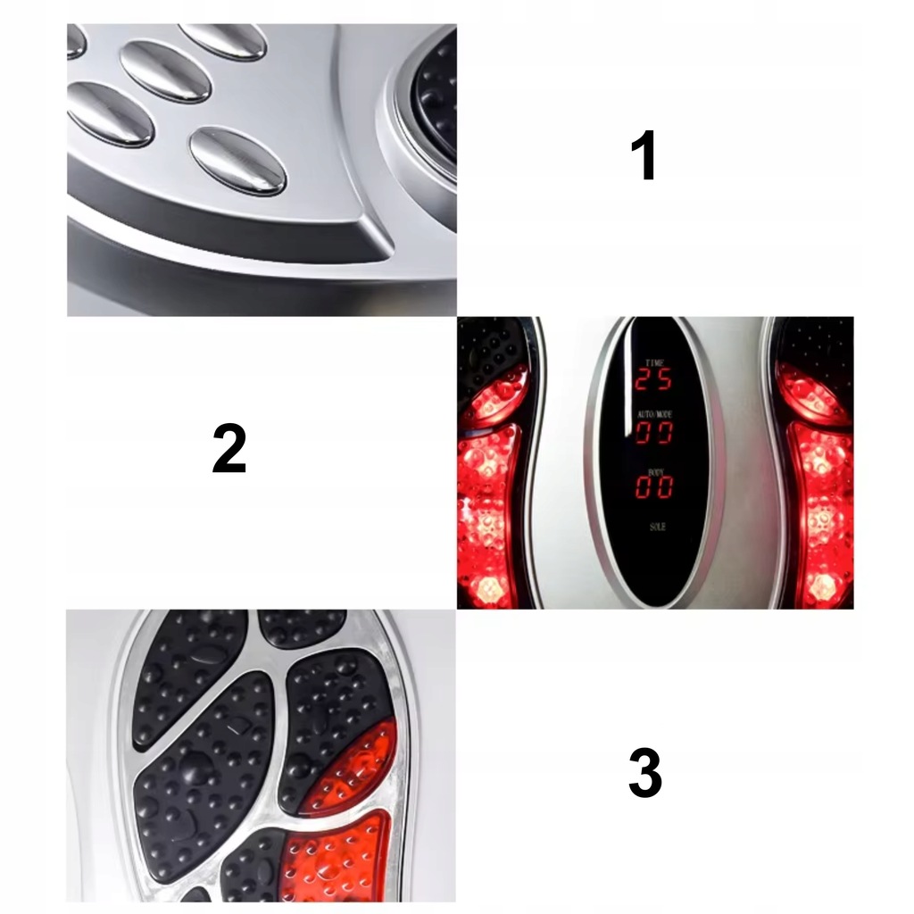 2️⃣  Cyfrowy wyświetlacz LED, który pokazuje czas, tryb pracy oraz intensywność masażu, co umożliwia pełną kontrolę nad urządzeniem.