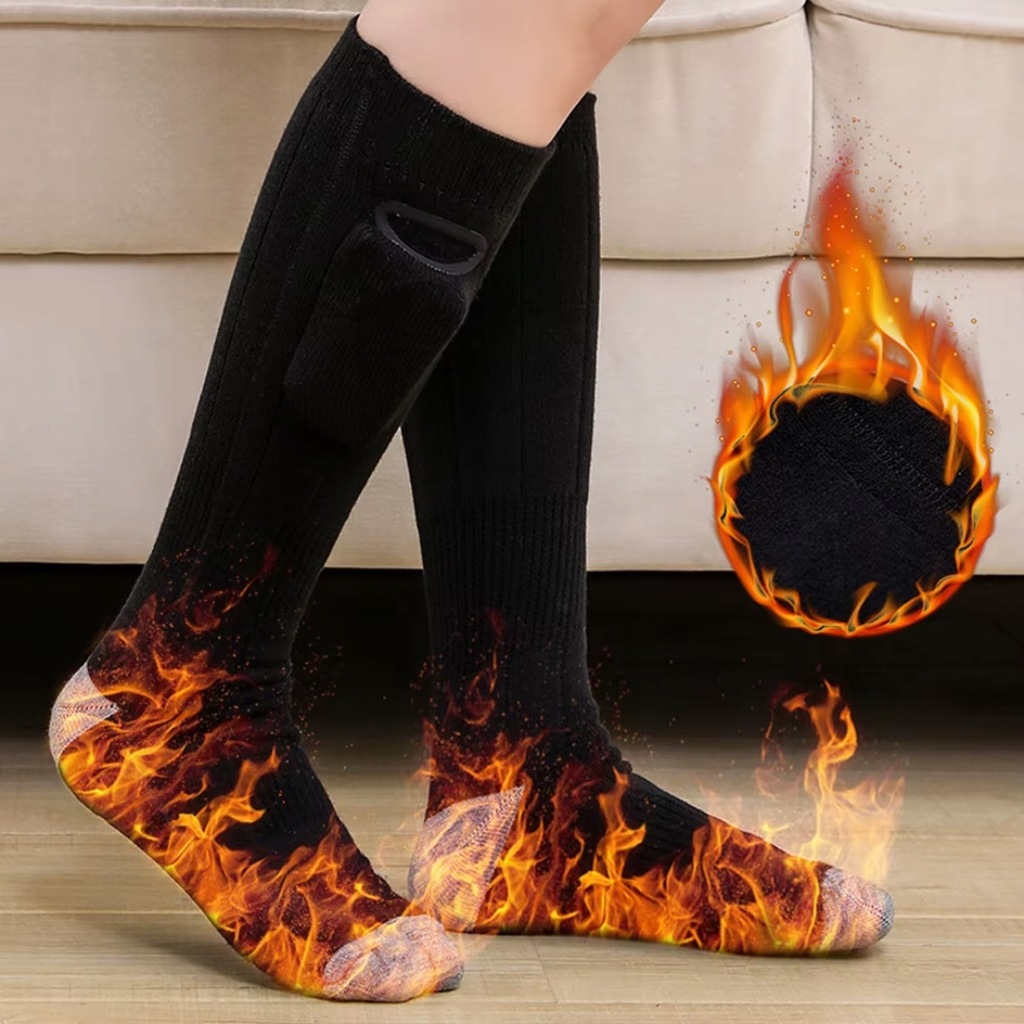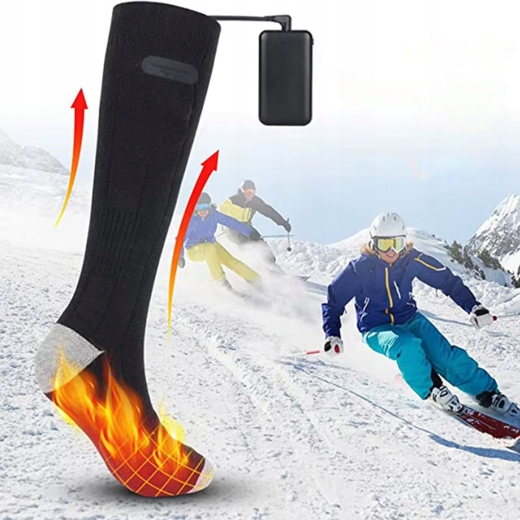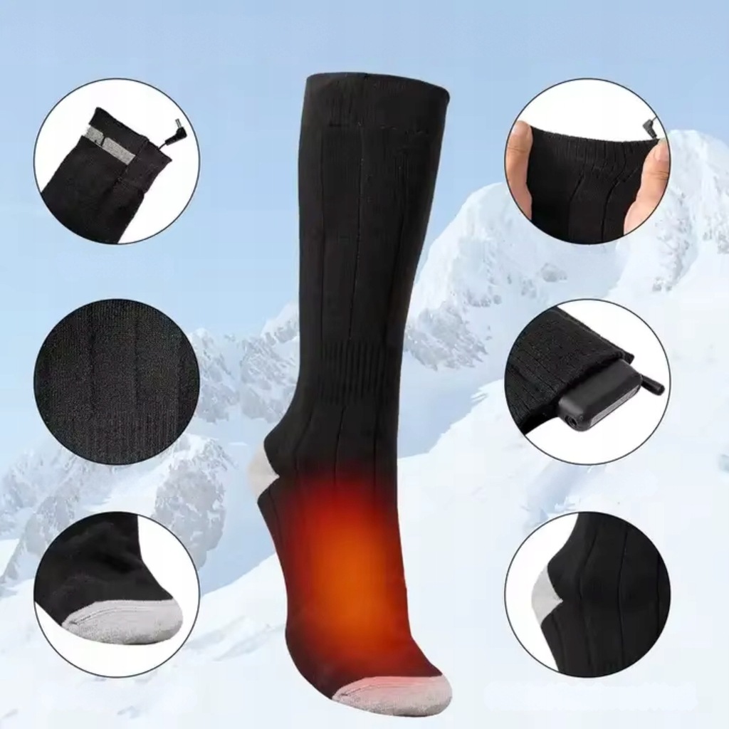 Grube, zimowe podgrzewane skarpety outdoorowe dla kobiet i mężczyzn, stworzone do komfortowego użytkowania w niskich temperaturach. Elektryczny system grzewczy, mocna bateria 5000 mAh zapewniają ciepło nawet podczas długich aktywności na mrozie.