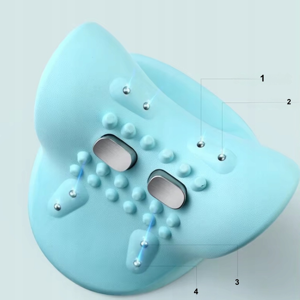 1️⃣ Metalowe punkty akupresurowe – Stymulują krążenie krwi i redukują napięcie mięśniowe w okolicach szyi oraz barków.