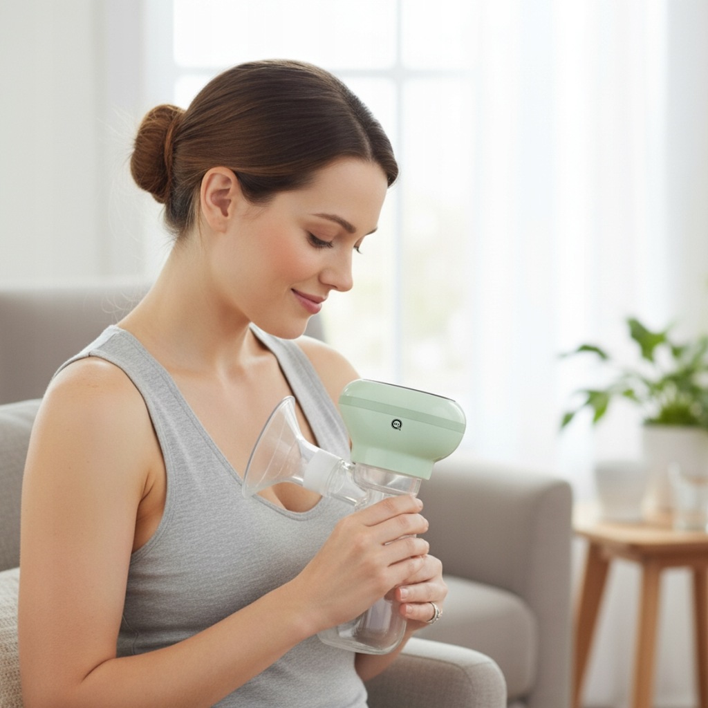 Nowoczesny laktator elektryczny QSKY został zaprojektowany zgodnie z naturalnym rytmem ssania dziecka, zapewniając delikatne, skuteczne i w pełni higieniczne odciąganie pokarmu.