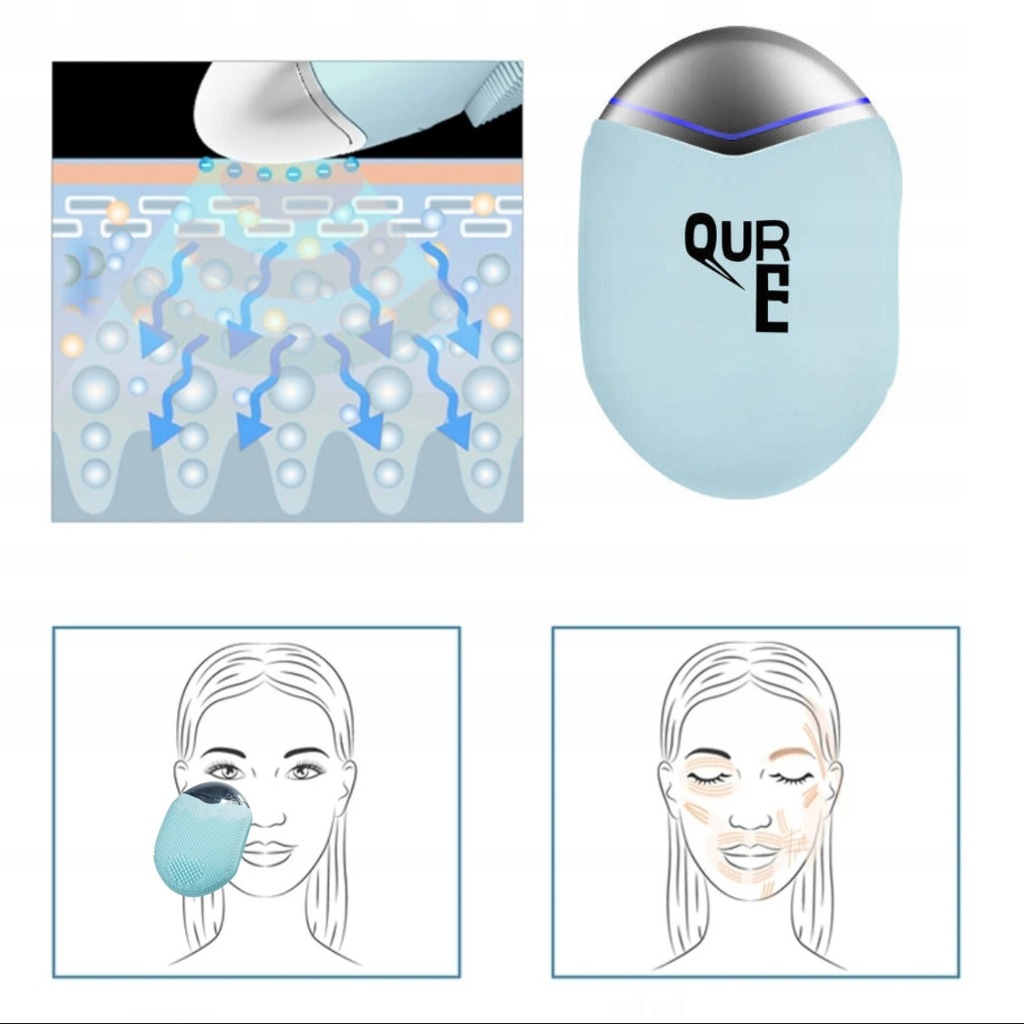 Rozgrzej i zmiękcz zrogowacenia. Otwieraj pory i wprowadzaj jony do skóry poprzez wibrację. Składniki odżywcze mogą przenikać w głąb skóry.