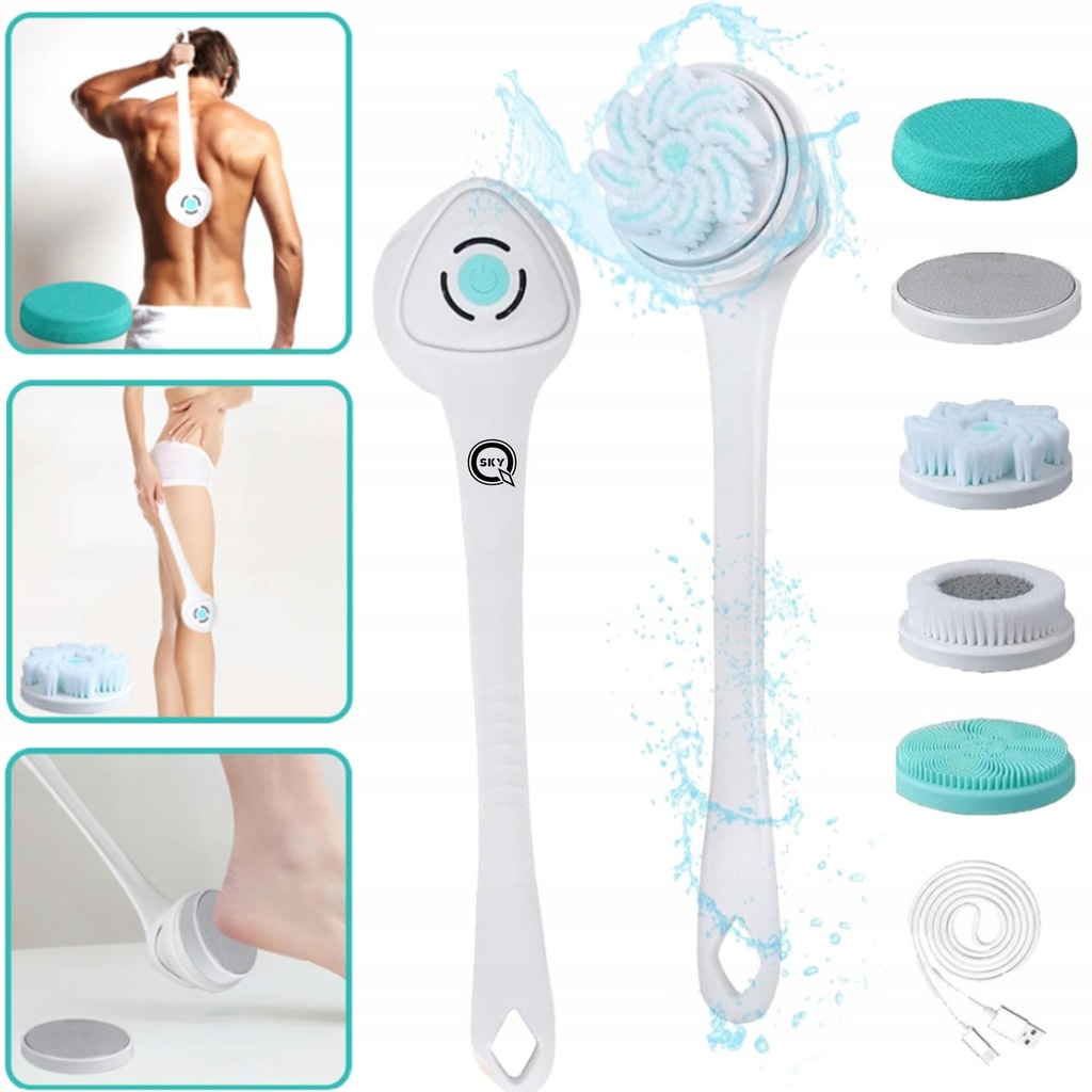 WODOODPORNA ELEKTRYCZNA SZCZOTKA 5W1 DO MYCIA PLECÓW STÓP CIAŁA TWARZY